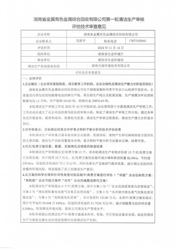 公司依次納入湖南省2024年度強制性企業清潔生產審核計劃,2024年順利通過專家評審和現場驗收,清潔生產水平得到明顯提升,可達到二級水平(即清潔生產國內先進水平)。